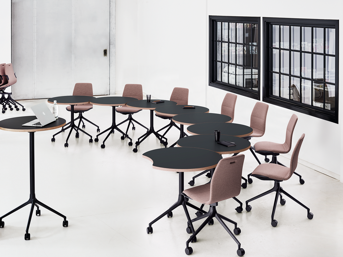 A practical yet sophisticated solution for stationary conference and meeting spaces, the Factor table is equally suitable as a task-based workstation.
