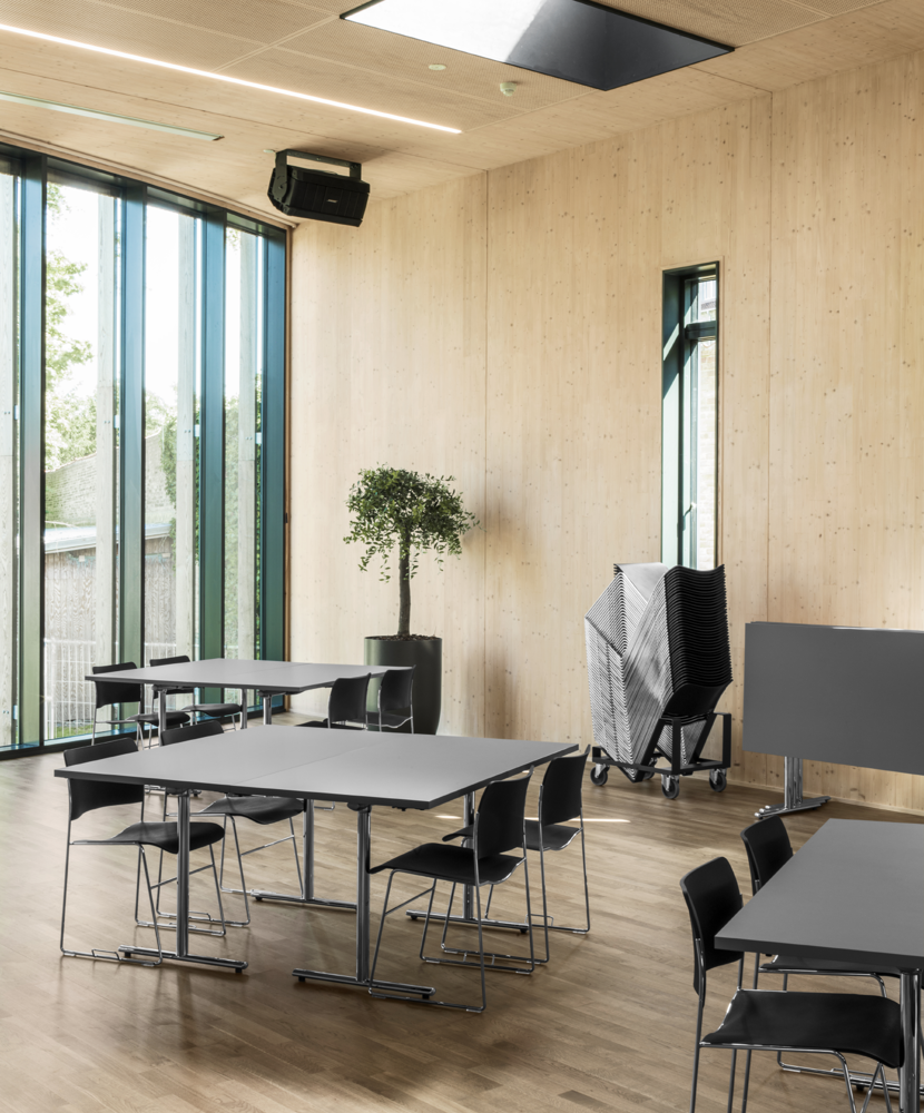 The 40/4 chair was chosen as the primary furniture solution for this essential utility — a lightweight, stackable, and mobile fix. An iconic design by David Rowland, the 40/4 chair is a classic piece found in historical, religious, and state-of-the-art buildings in major cities from London to Chicago. The Tempest flip-top tables complete the versatility of the centre’s rooms. Visitors can collapse and couple tables to create space, as needed.