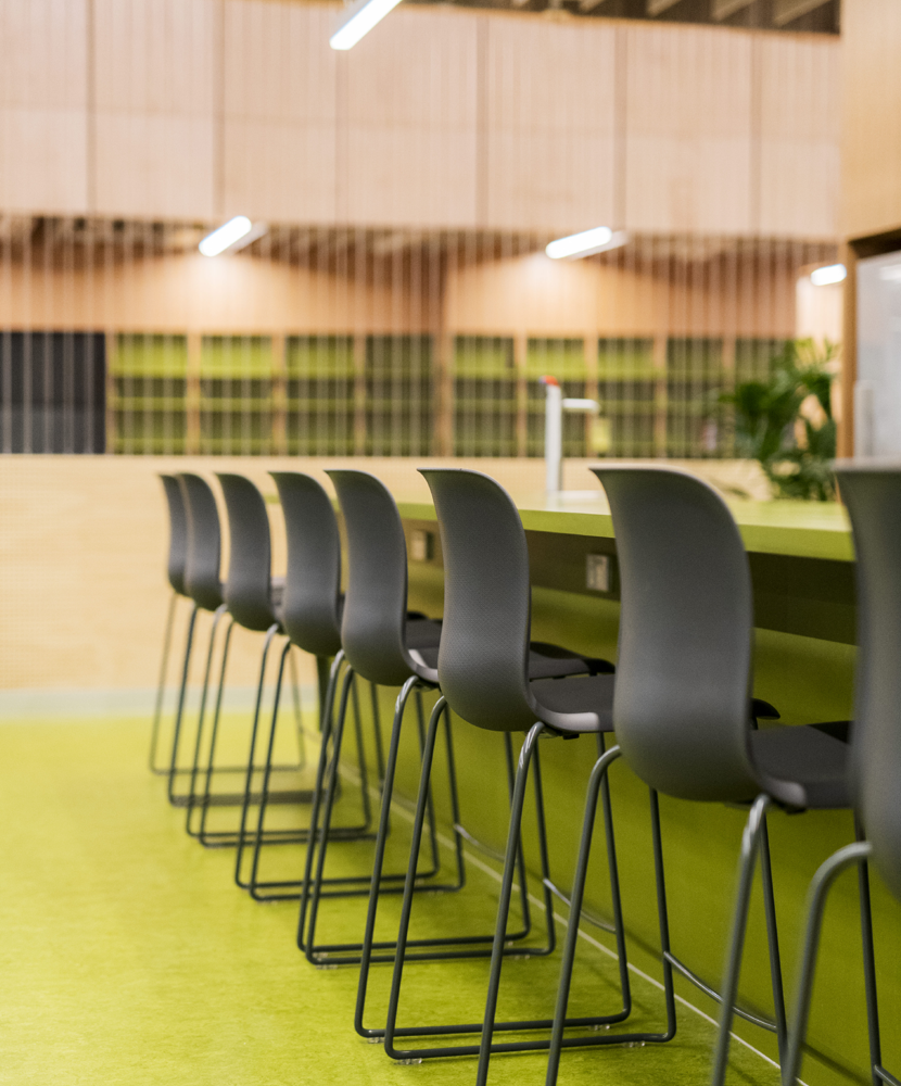 In line with the university’s strong vision for the future of education, the building’s architects have looked at spaces for these pre-, in- and post-class experiences of learning. The architects have designed in a vast number of informal study spaces and nooks, one of which is its stunning ‘escarpment stair’. For many of these spaces, they’ve chosen HOWE as a design partner to provide seating.