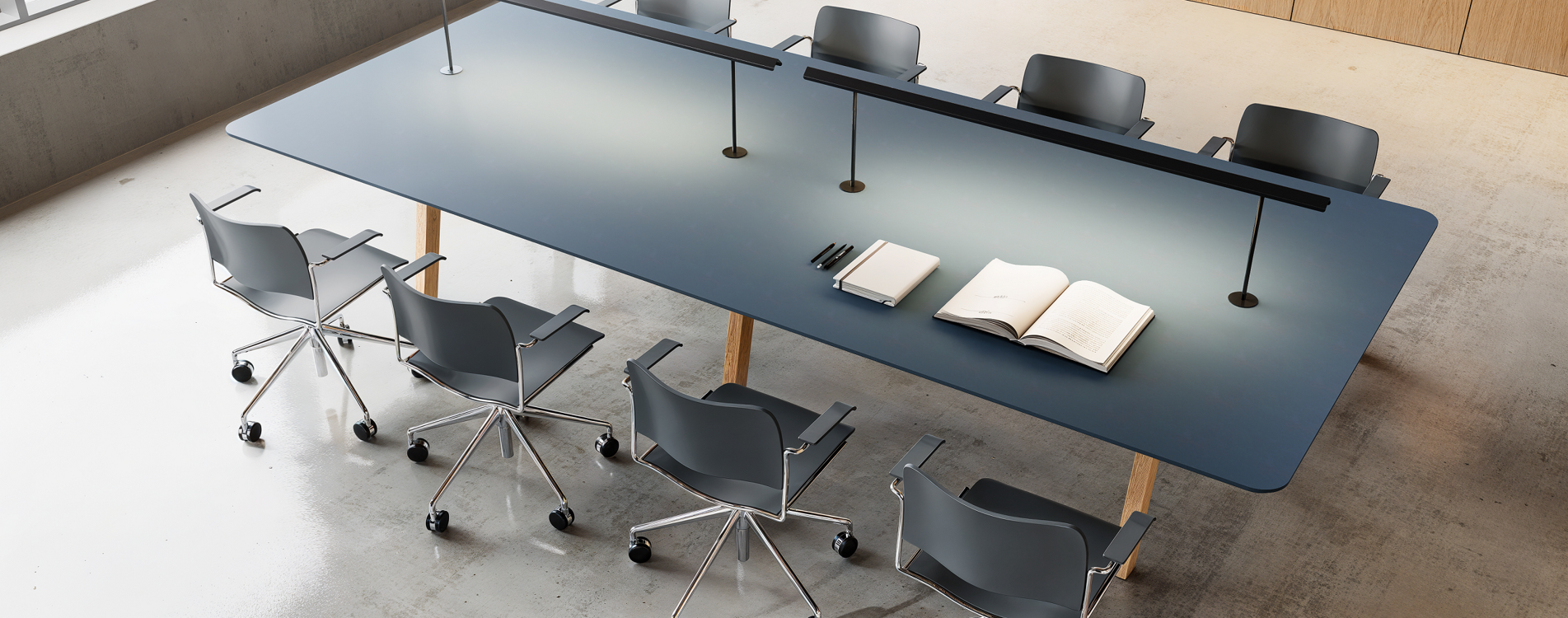 HOWE introduces Factor, a versatile table that seamlessly blends style, functionality, and sustainability. Now available as both a conference table and as counter and bar-height options,