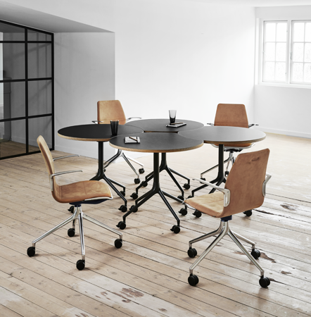 All nesting tables and chairs in the AS series come with a mobile wheel-base. With a light “push,” you can create new furnishing dynamics that maintain a harmonious design language throughout your interiors.