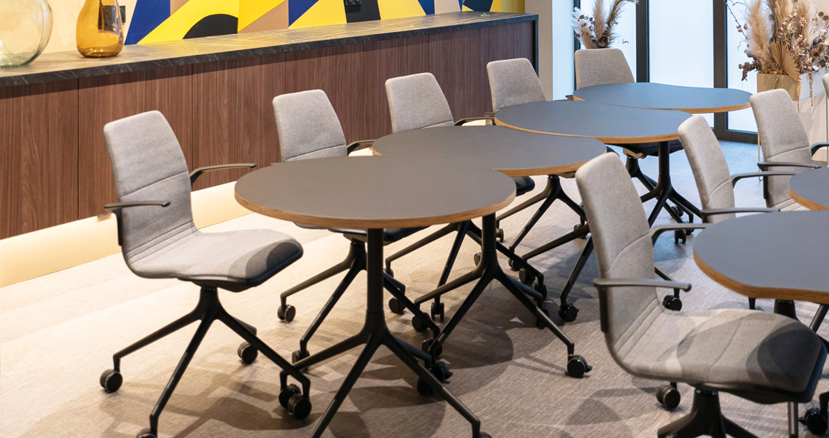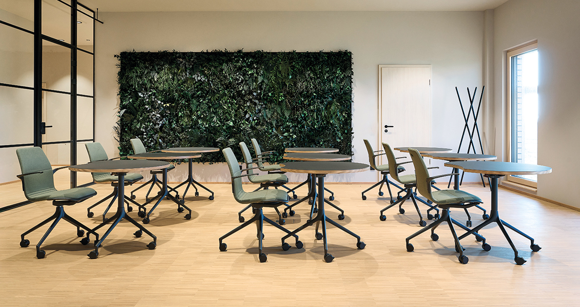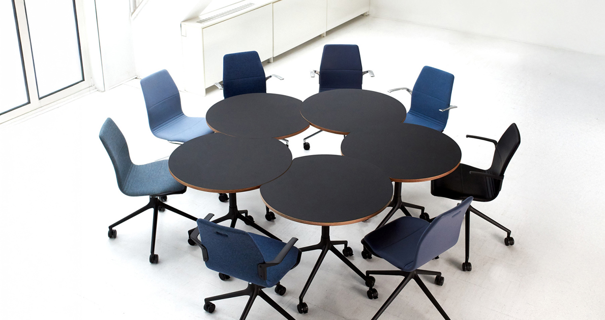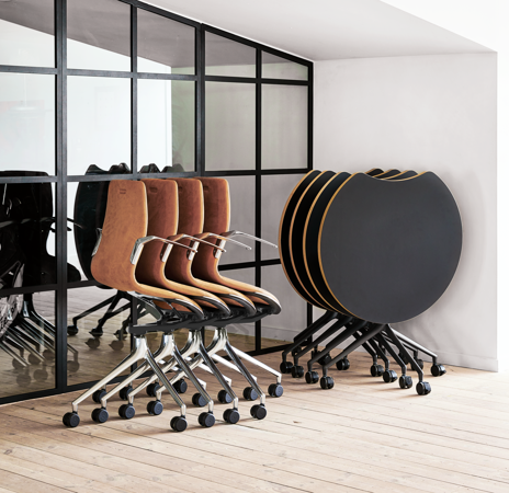 All nesting tables and chairs in the AS series come with a mobile wheel-base. With a light “push,” you can create new furnishing dynamics that maintain a harmonious design language throughout your interiors.