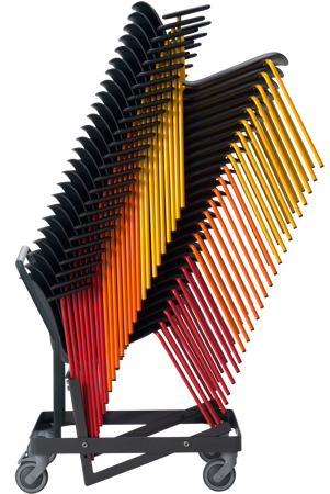 With upholstered seat pad: up to 16 chairs on dolly and 10 on the floor.