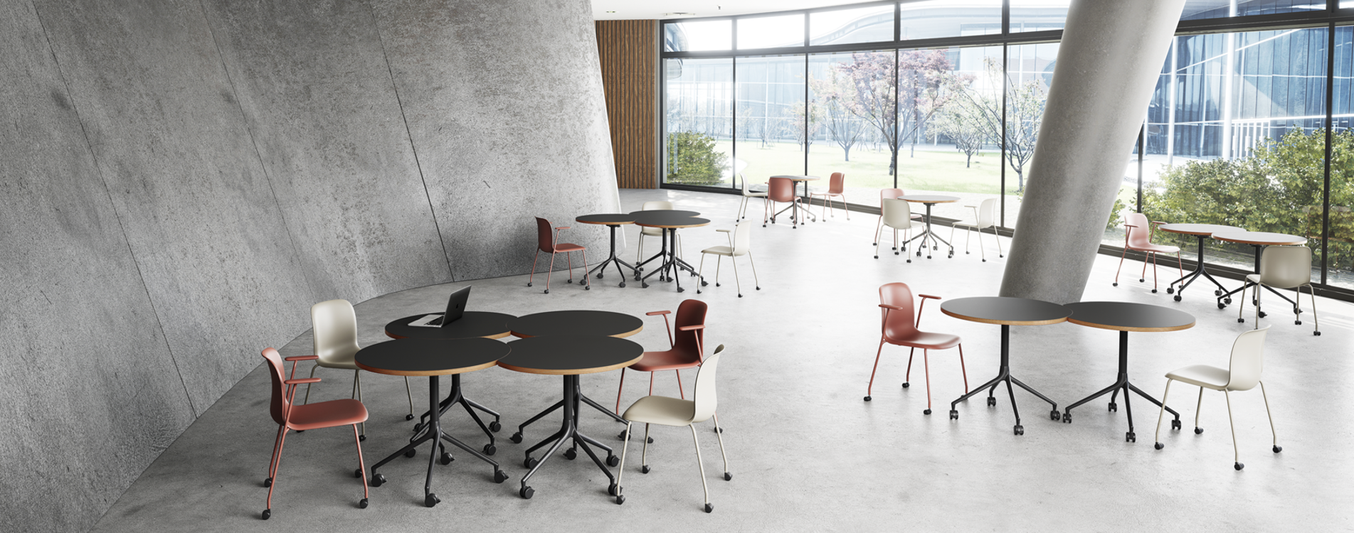SixE 4-leg with castors is a stackable multi-purpose chair that offers extra mobility. Ideally suited to collaborative, training, meeting and conference environments, SixE 4-leg with castors is the truly created for mobility and flexibility. The castors are sturdy, albeit discreet, making the chair an ideal solution for projects where there is no place for compromise between space-saving solutions and smooth mobility of the chair.