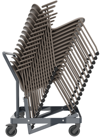 Polypropylene and with upholstered seat pad: up to 15 chairs on dolly and 5 on the floor.