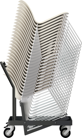 Polypropylene: up to 25 chairs on dolly and 15 on the floor.