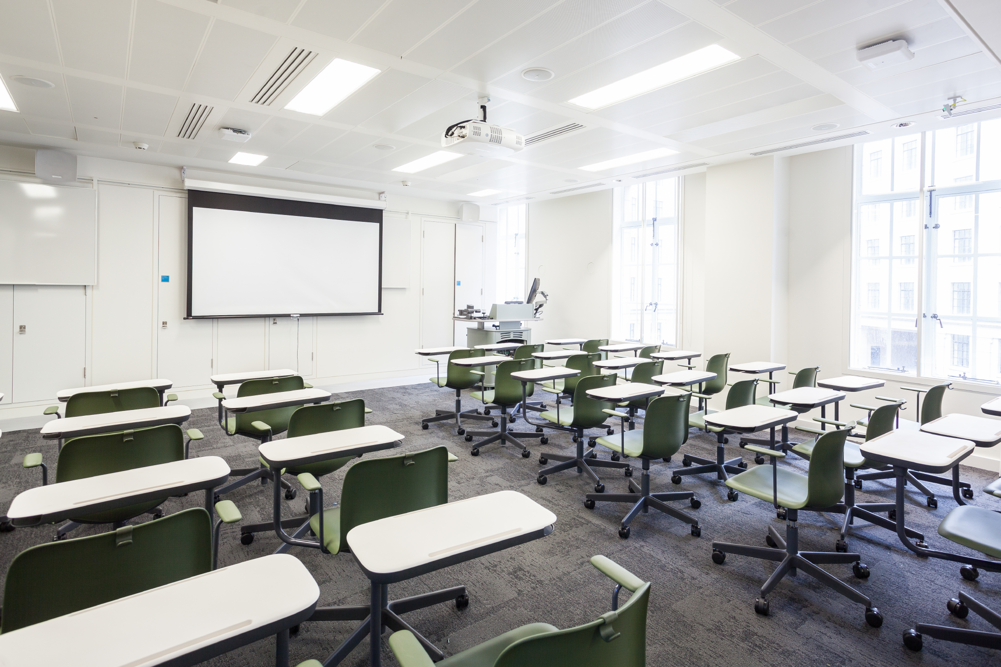 The SixE chair family delivered this agility and playfulness, furnishing seated auditoriums, lecture theatres, seminar rooms, trading labs, student services, and academic offices throughout the building. The chair’s Bauhaus design adds a touch of charm as the brilliant shape of its shell gives lasting ergonomic comfort.