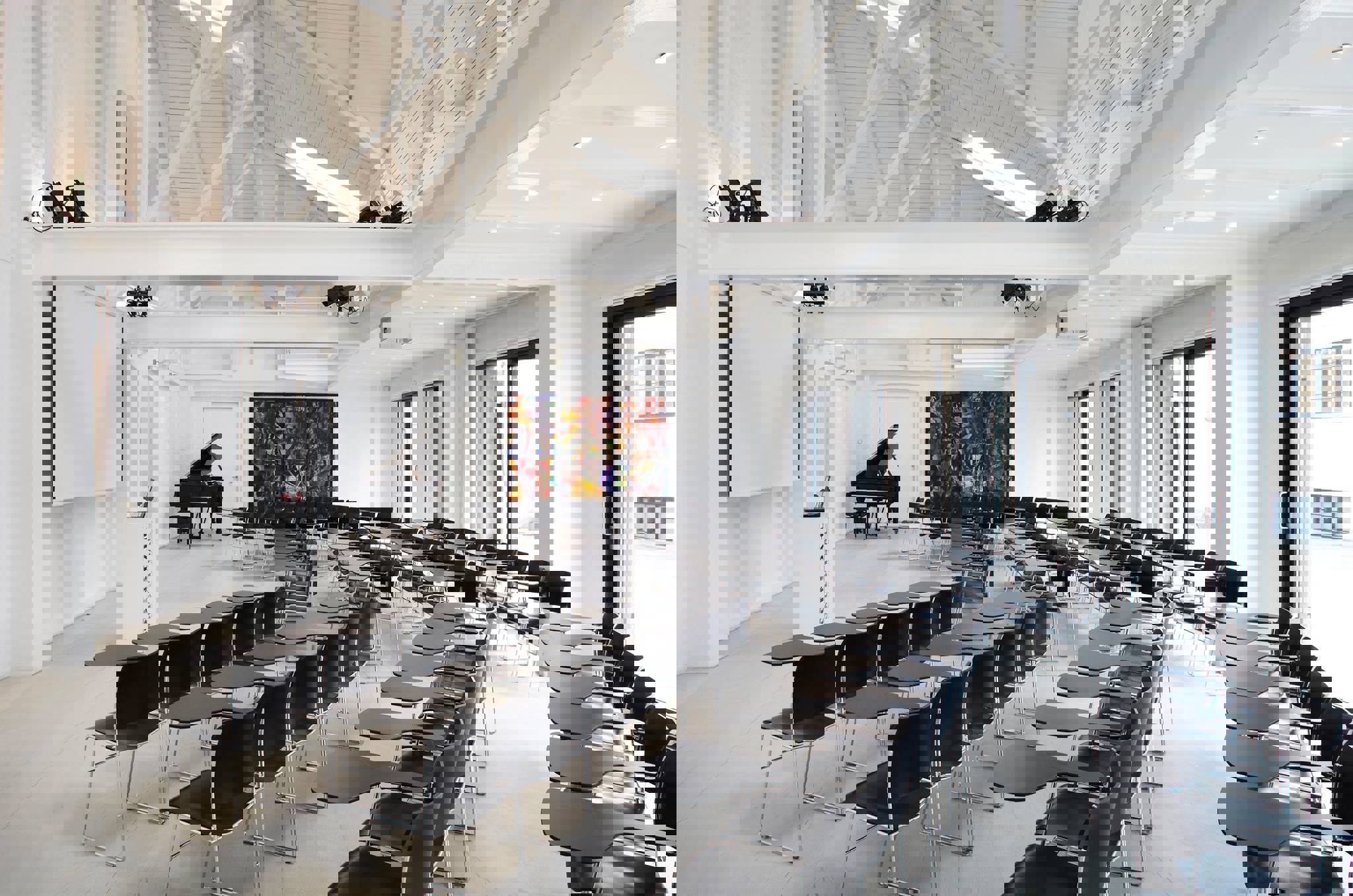 “We really like the flexibility of the 40/4 chairs with the option of placing them close together, or with a distance using the writing tablets. The clean look is a perfect match for the Concert hall and when we need to stack them, they even look nice on the trolley.”
