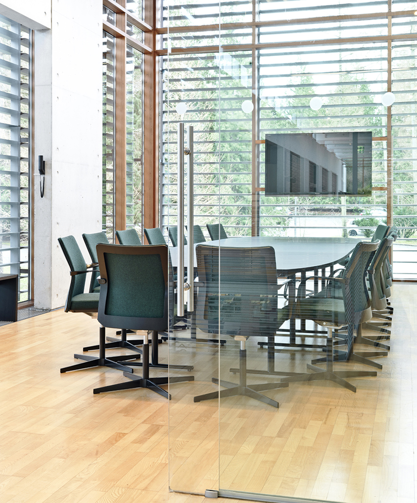 “The room is the most transparent conference room and a natural choice for e.g. boardroom meetings. We wanted an exclusive look and a product offering, which could bring the nature inside the transparent glass walls.”