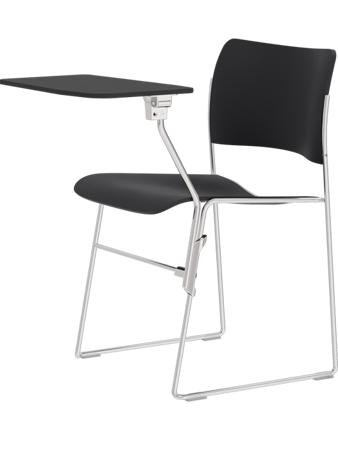 - 40/4 writing tablet, black, chrome frame, 10 mm compact laminate, w/o cup holder, left
