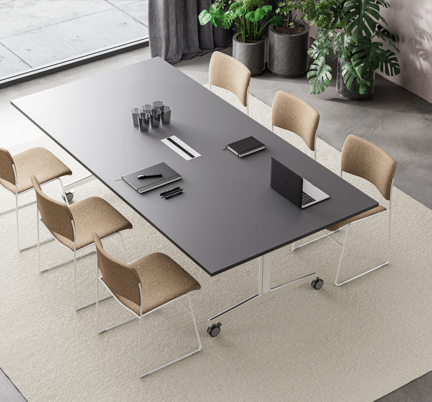 - Moreover, the table’s adaptability makes it an excellent choice for neurodiverse employees. The ability to position the table in quieter, less trafficked areas ensures that those who are easily sidetracked can create a setting of bolstered focus. This level of customization is key to inclusivity, as companies strive to address varied employee preferences and working styles. Folding Surfaces paired with AS100 chairs gives the freedom to unfold a clean and comfortable surface with power integration to charge laptops and phones easily.