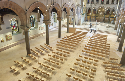 Elegant, minimalist design allows the chair to effortlessly exist within diverse architectural venues.