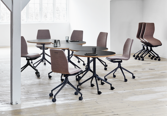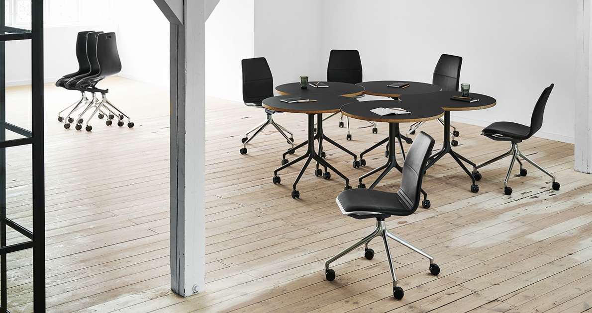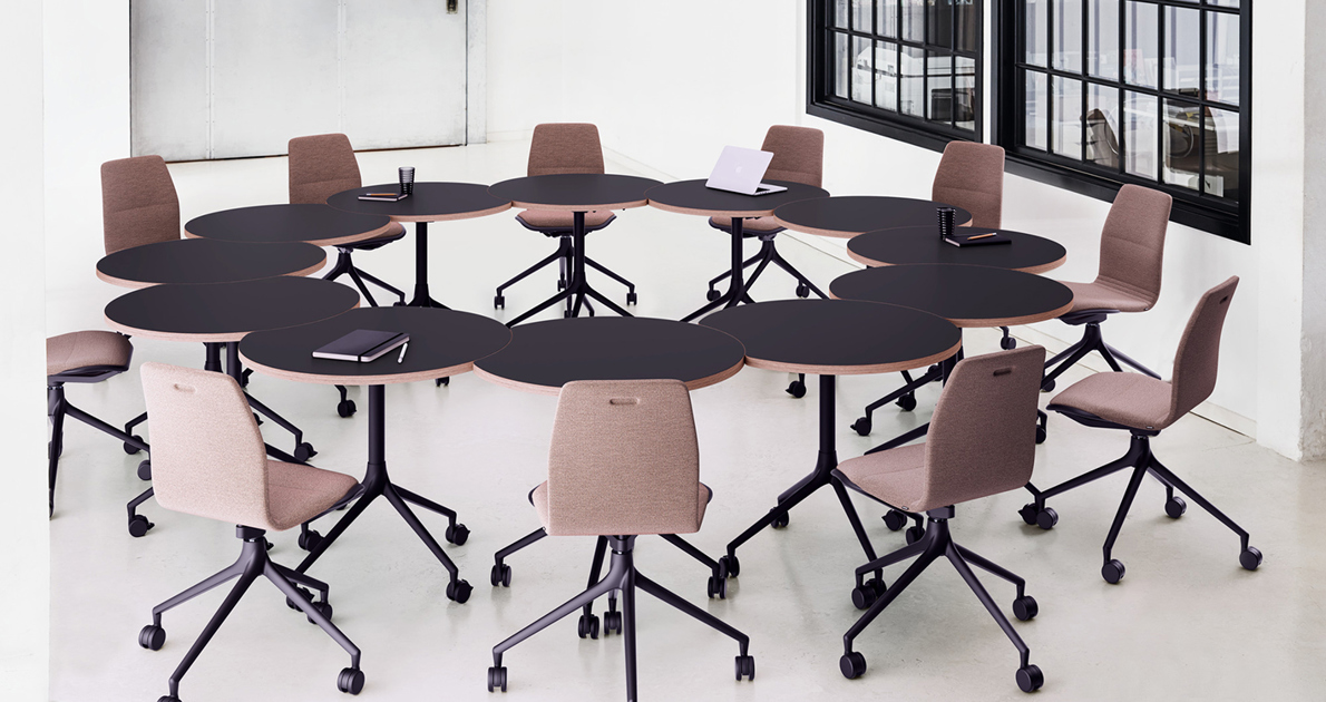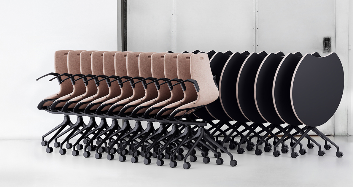 All nesting tables and chairs in the AS series come with a mobile wheel-base. With a light “push,” you can create new furnishing dynamics that maintain a harmonious design language throughout your interiors.
