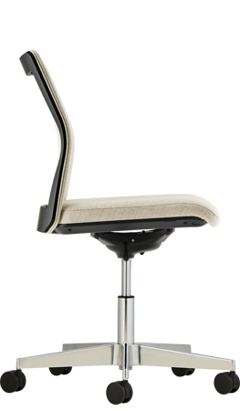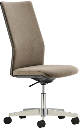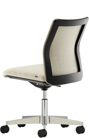 MN1 5-star side chair is a meeting and conference chair focused on comfort and classic lines. Designed for a wide range of uses. Exposed veneer back frame. Back in mesh or front upholstered. Two different back heights.