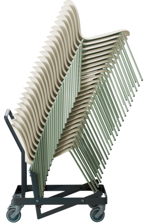 Polypropylene: up to 25 chairs on dolly and 15 on the floor.