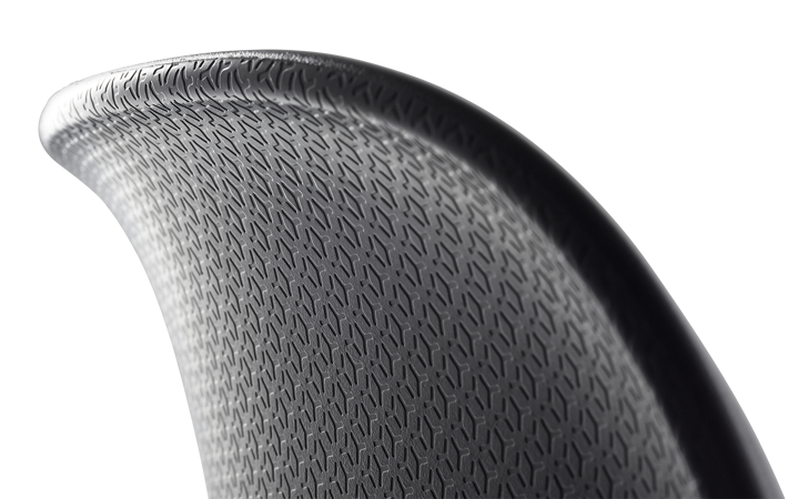 The carefully tuned back forms a natural yet controlled flexure system with fundamental lumbar support for superb comfort. Additionally, a soft rolled edge means no pressure points are generated and allows sitting in a variety of positions.