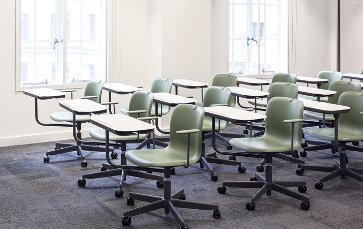The SixE Learn is a flexible chair for collaborative learning environments. It moves, turns, and takes things to the next level. Adding a string of well-thought features such as a personal work surface with storage, SixE Learn makes room for endless active experiences.