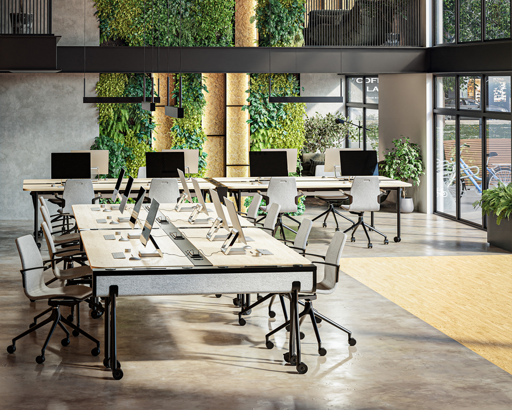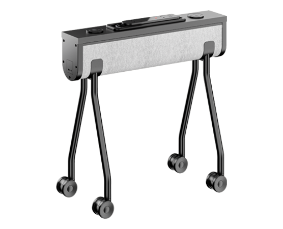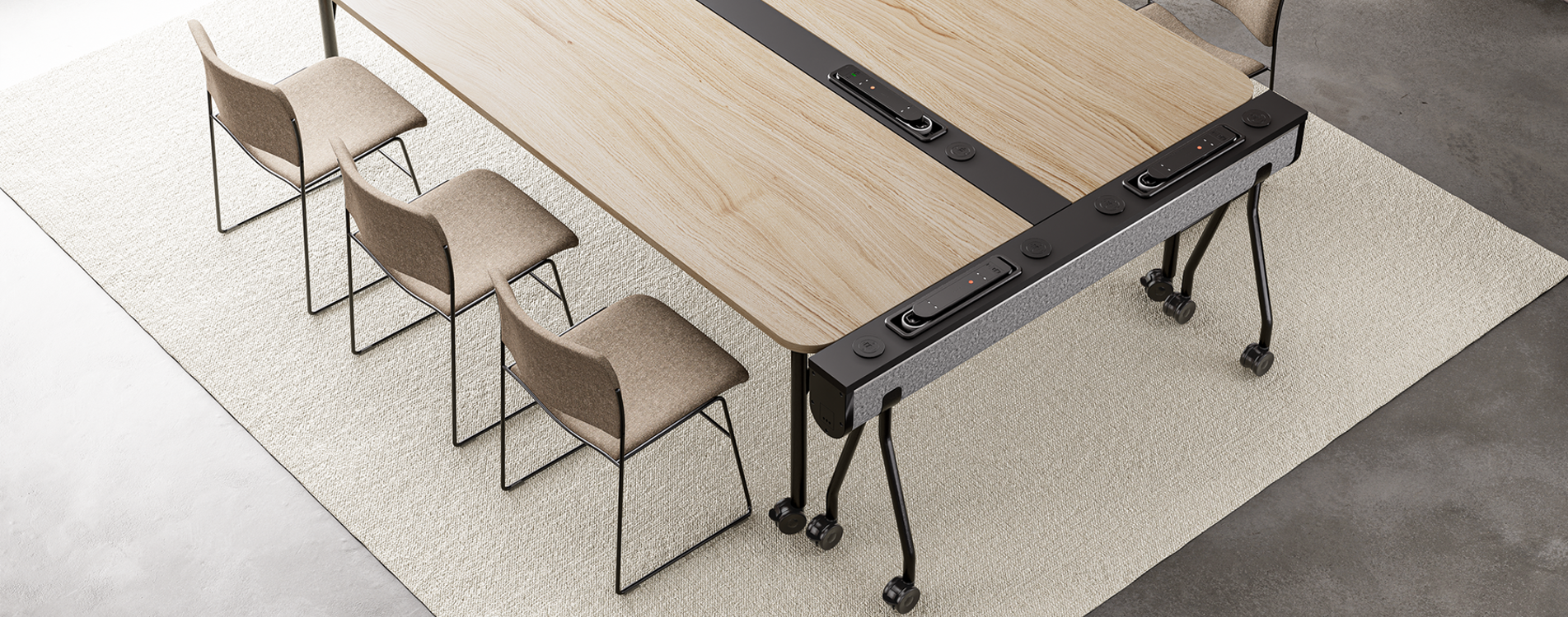 As a natural extension for the family, Folding Surfaces come with mobile power units that provide extra power on demand. Battery power or soft-wired power, housed in a modern PET felt cover on a mobile table-matching frame, is how this technology can enhance architecture.