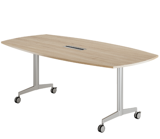 Moveo is a handsome table system that encourages organizations to develop a dynamic corporate culture. Inverted T-leg style. Rectangle or full boat shape tabletops in several sizes. Tables can be nested when not in use. Moveo conference stand alone allow to comfortably sit at the short end of the table.