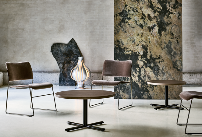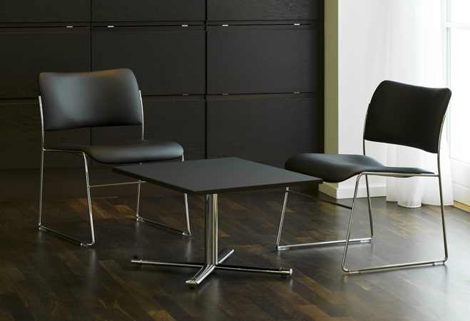 The X-leg style and 4 adjustable glides make Tempest lounge tables easy to fit into any contract environment. Round upright and elliptical feet complete the whole purposeful design. Tempest lounge tables come with a fixed base and square or custom tabletops.