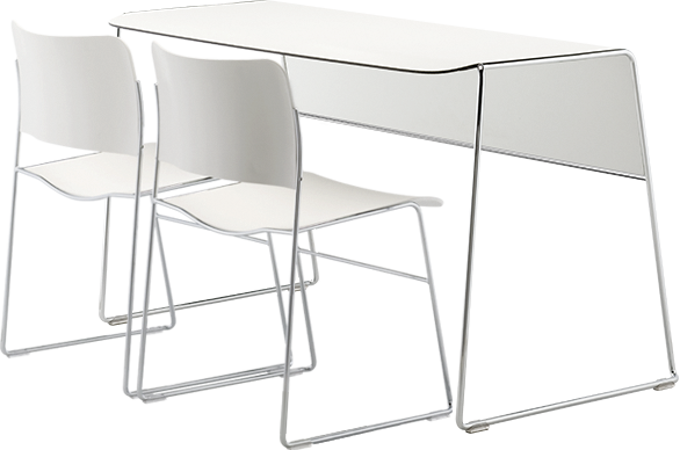 The Tutor double is an easy-to-manage, two-person stacking table developed to accompany the famous 40/4 chair.