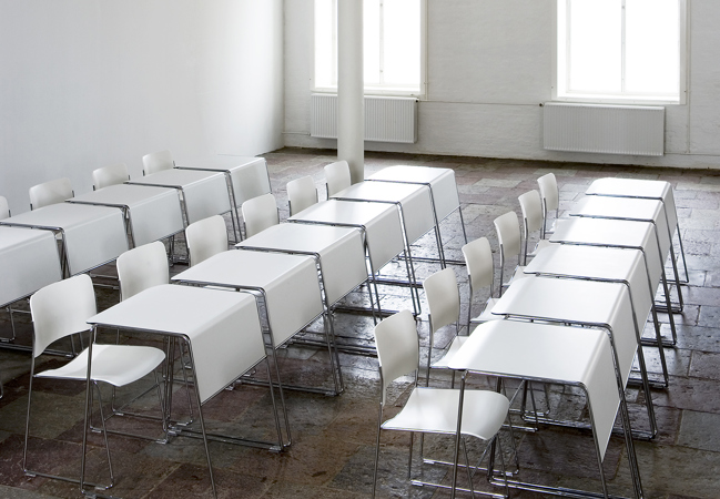 Tutor is a high density stacking table developed as a companion table to the renowned 40/4 stacking chair programme.