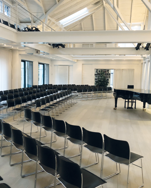 The concert hall is tucked away in a quiet backyard in historic Islands Brygge, Copenhagen. It hosts concerts, cultural activities, meetings, events, conferences, and product launches.