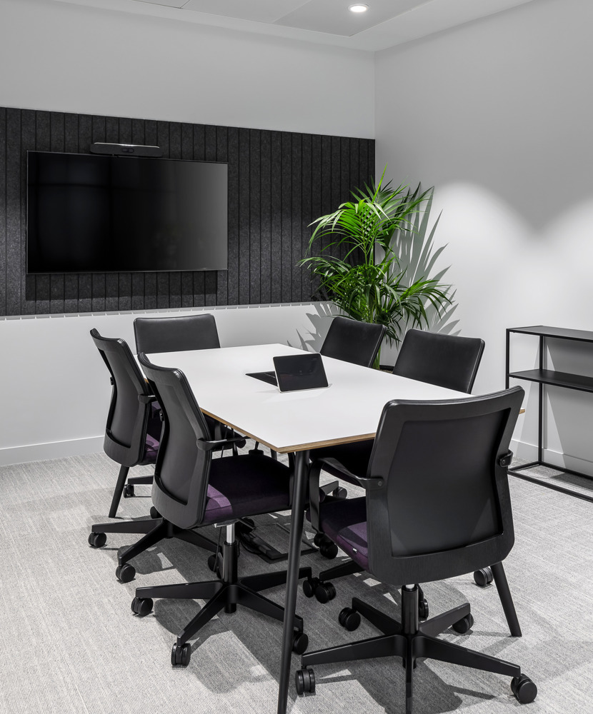 For the meeting rooms, both formal and informal collaboration hubs, THM selected MN1 5-star chairs. These chairs complement the technologically advanced and acoustically sound interiors, affording seamless collaboration, in-person and remote. Boasting timeless comfort and refined aesthetics, the MN1 armchair, with its leather-upholstered back and vibrant seat upholstery atop a sleek black powder-coated base, finished their traditional and contemporary meeting spaces alike, infusing the corporate space with welcoming ambiance.